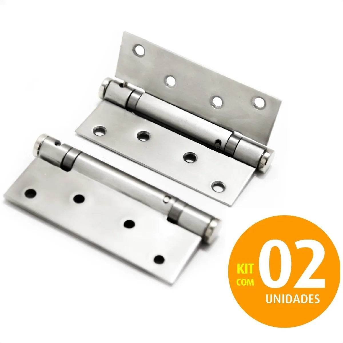 Dobradiça Com Mola 4x3 Aço Inox 304 Polido Kit 2 Pçs