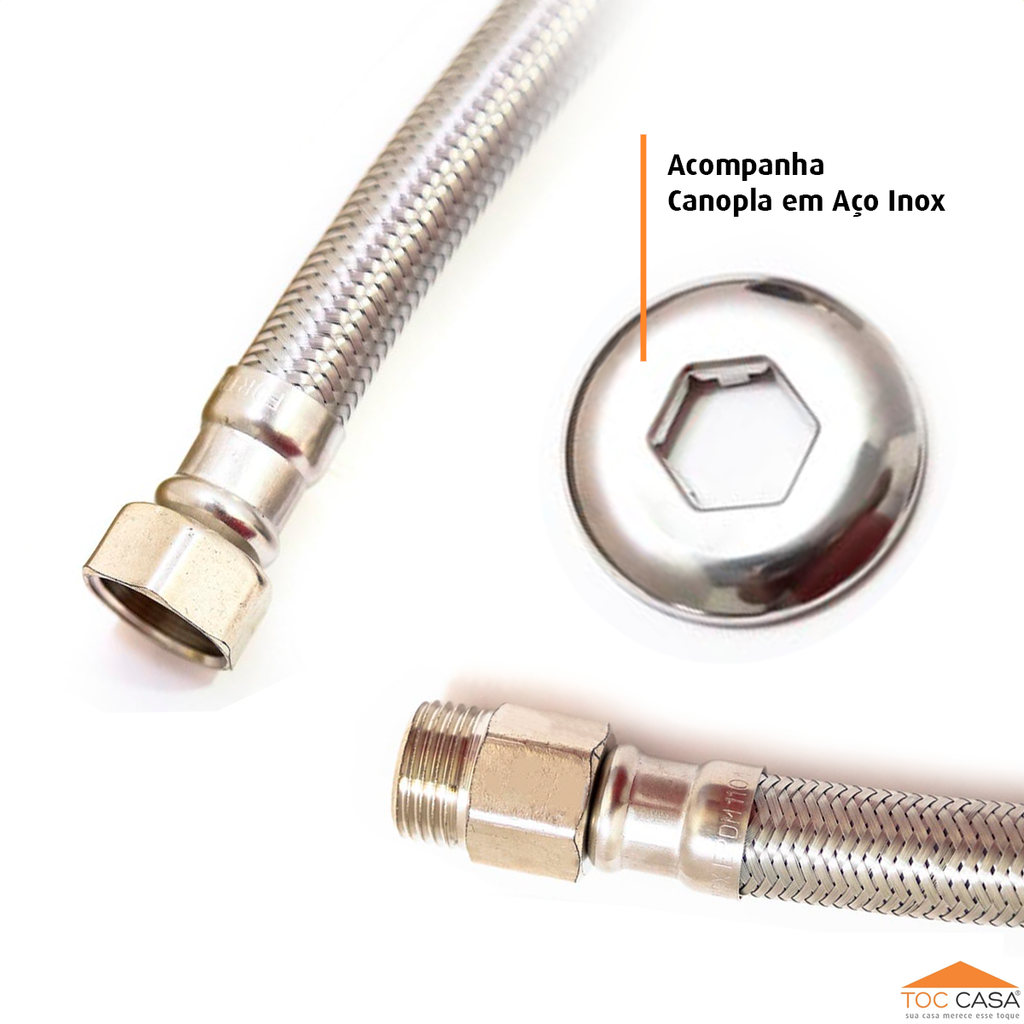 Engate Flexivel Trançado Inox Passagem Plena 100cm