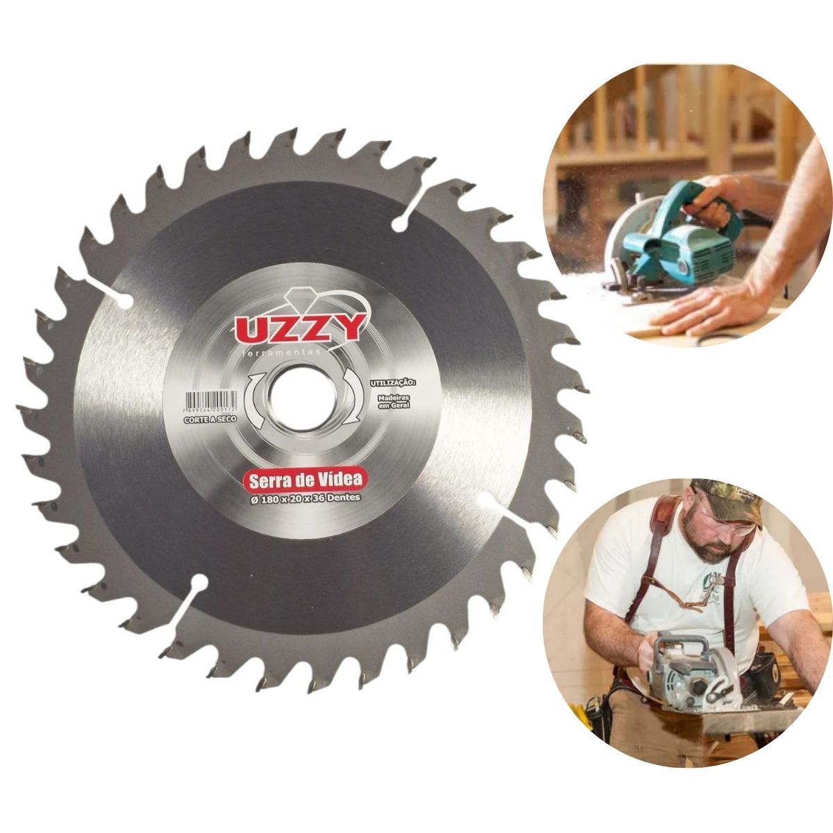 Compatível com serras circulares manuais e de bancada que suportem discos de 180mm com furo de 20mm.