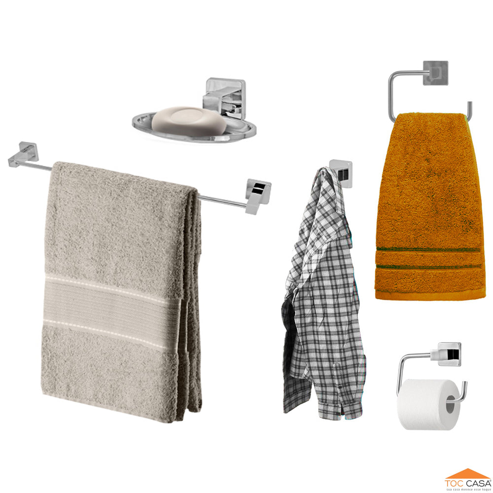KIT ACESSÓRIOS 5 PEÇAS CROMADO - LUCCA