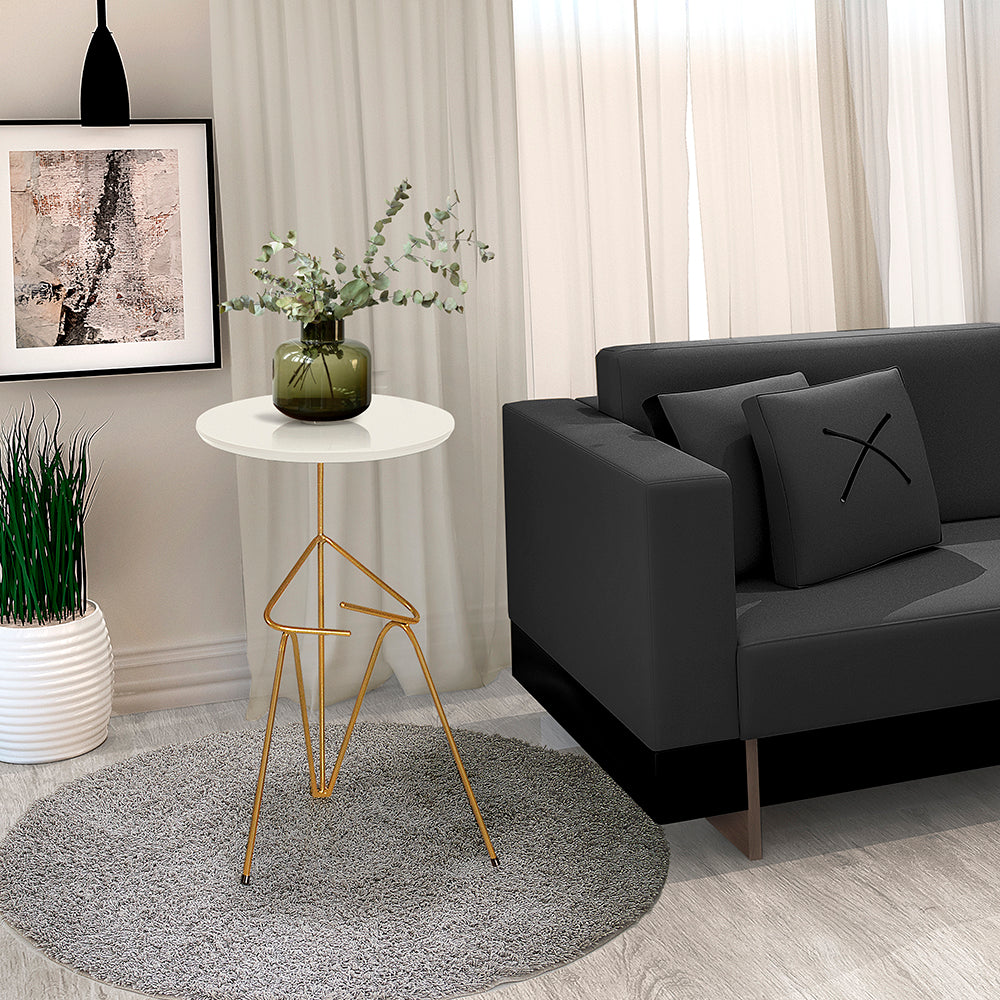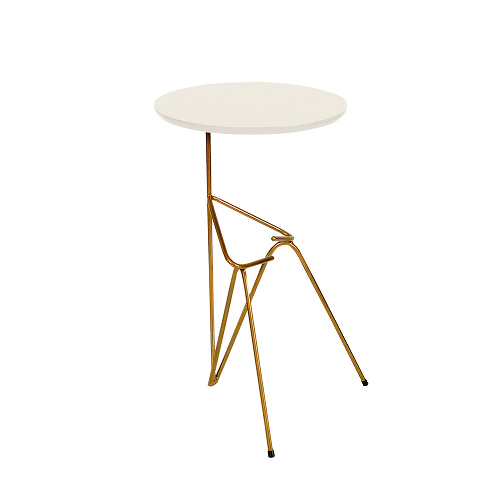 Mesa De Canto Lateral Mesinha Bambino Base Dourado e Tampo Off White