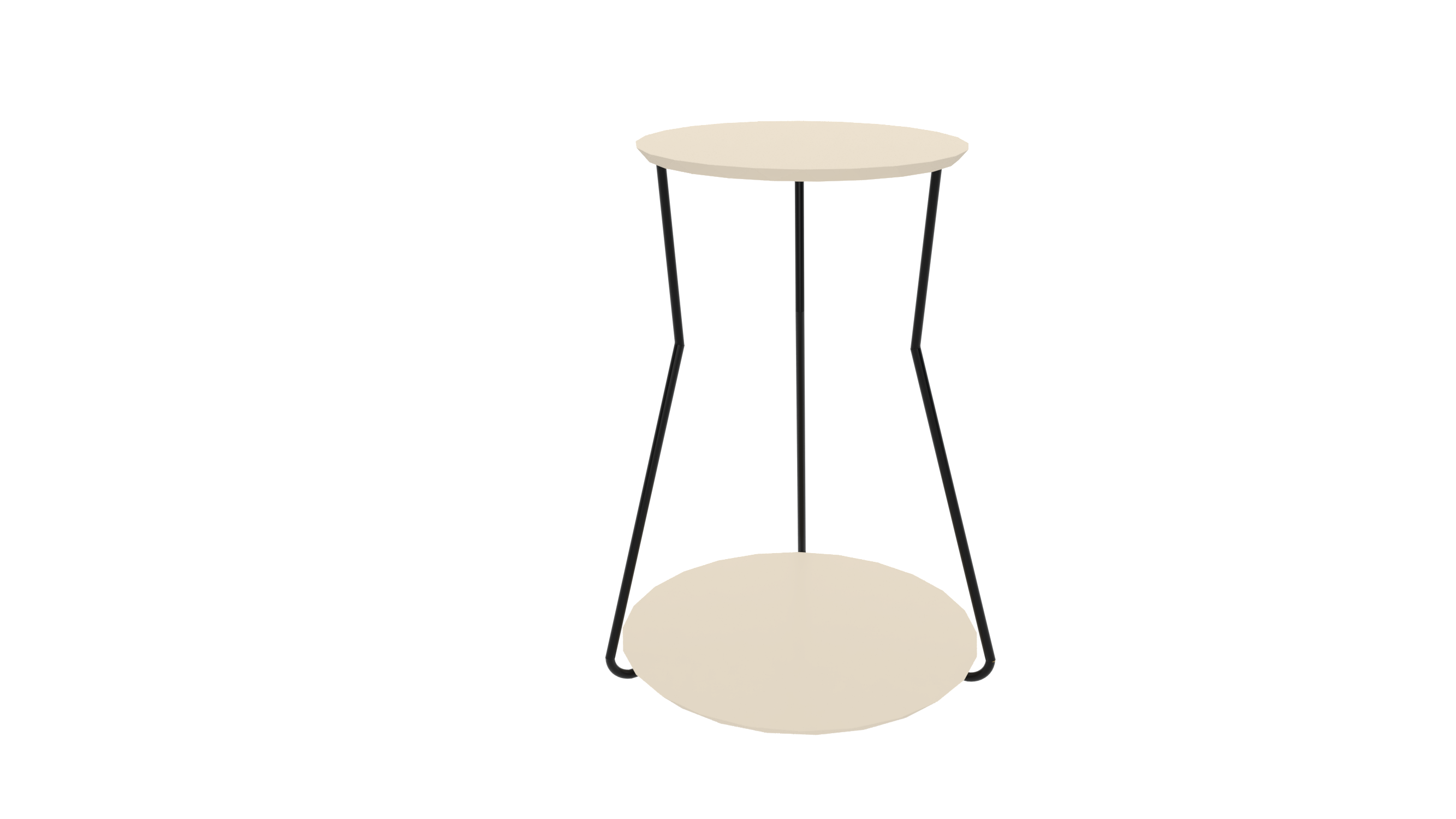 Mesa Lateral Industrial 2 Andares Base Preta e Tampo Off White De Canto Redonda