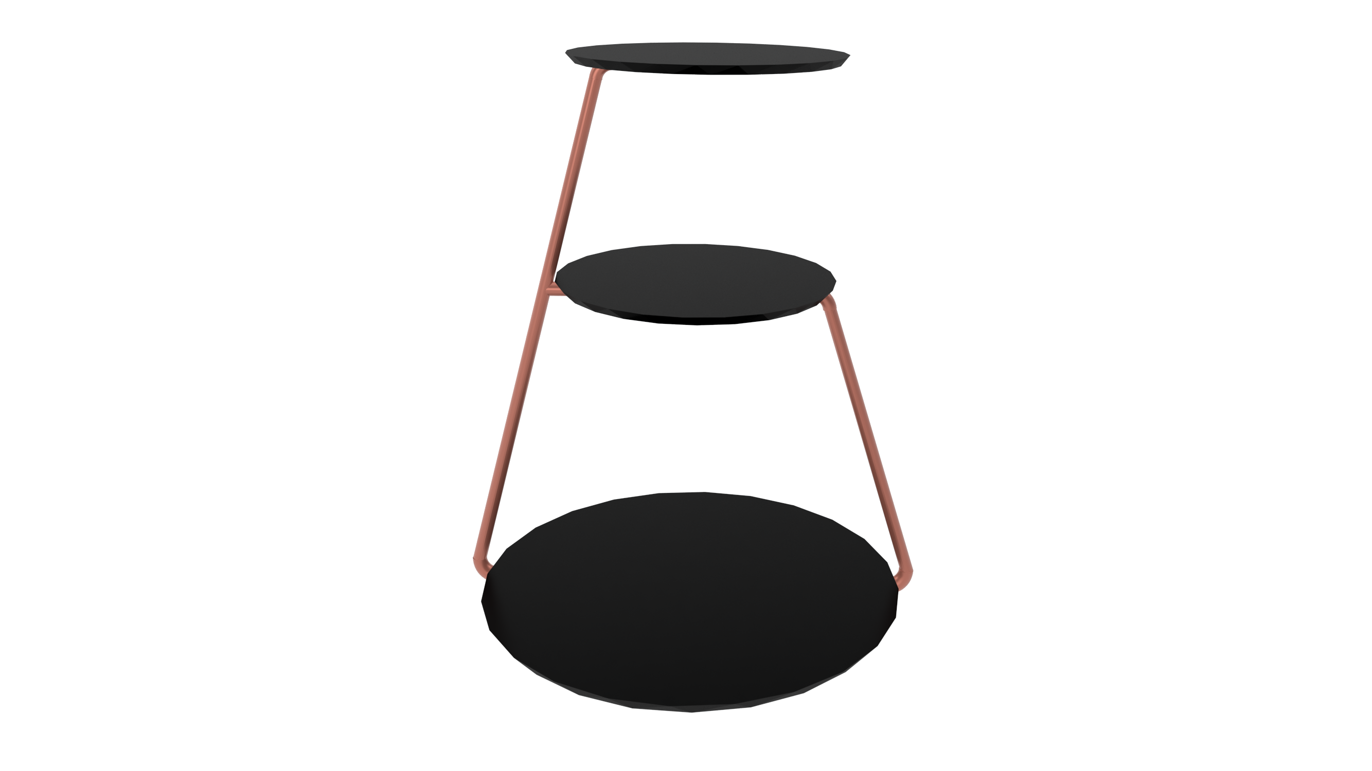 Mesa Lateral Industrial 3 Andares Base Cobre e Tampo Preto De Canto Redonda