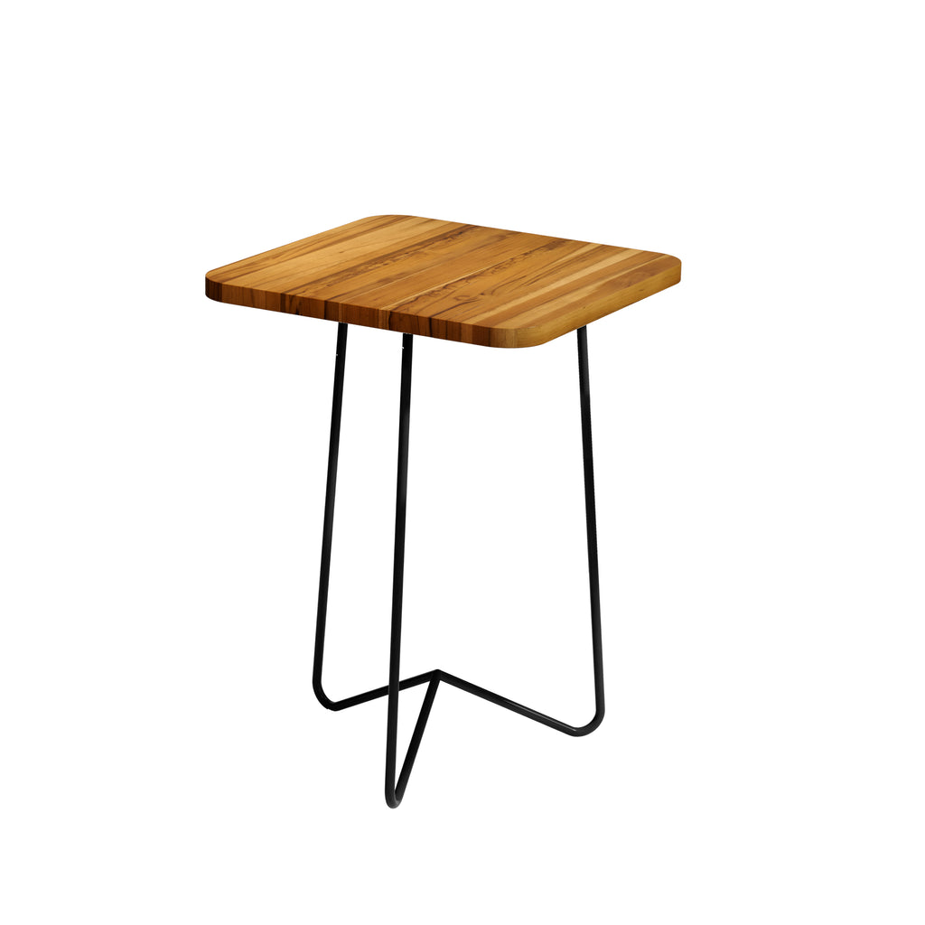 Mesa Lateral Milão 60cm Madeirado Quadrada Base Em Ferro Maciço e Tampo Em Madeira Reflorestada