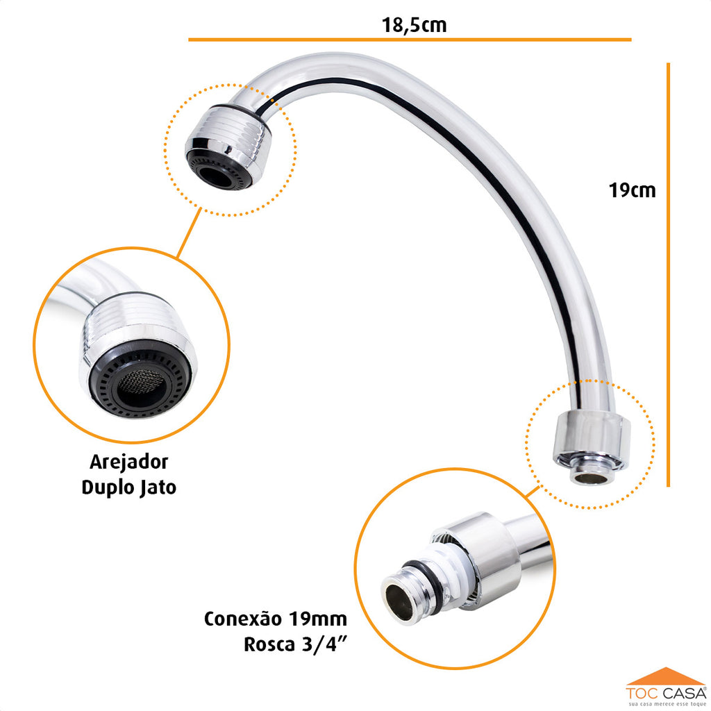 Tubo Bica Cozinha Gourmet Arejador Duplo Jato Abs Cromado está em espera e será enviado assim que estiver de volta em estoque
