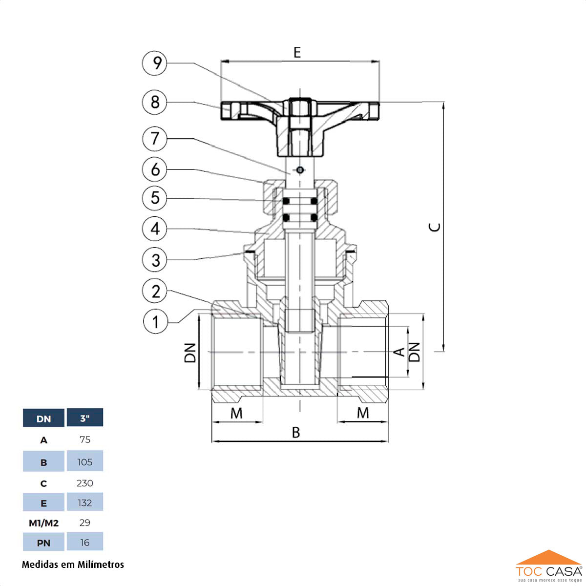 Registro de Gaveta Saneamento Latão Forjado 3” IVM ITALY