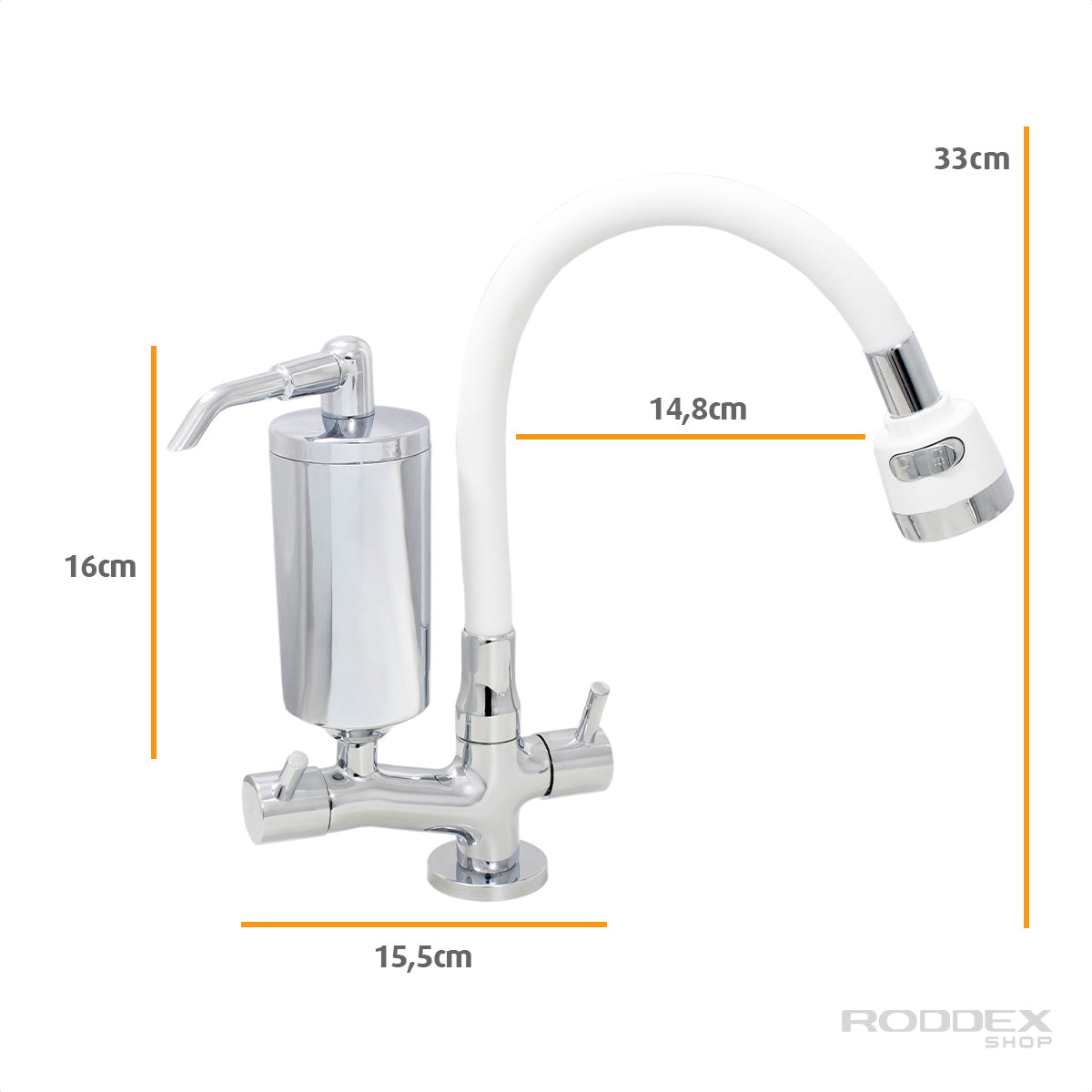 Torneira com Filtro de Água e Bica Flexível – Roddex | Com Arejador Duplo Jato + Refil Blindado