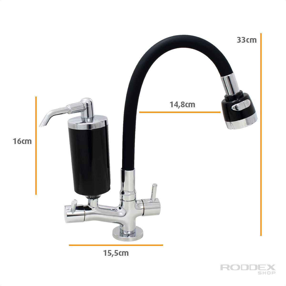 Torneira com Filtro de Água e Bica Flexível – Roddex | Com Arejador Duplo Jato + Refil Blindado